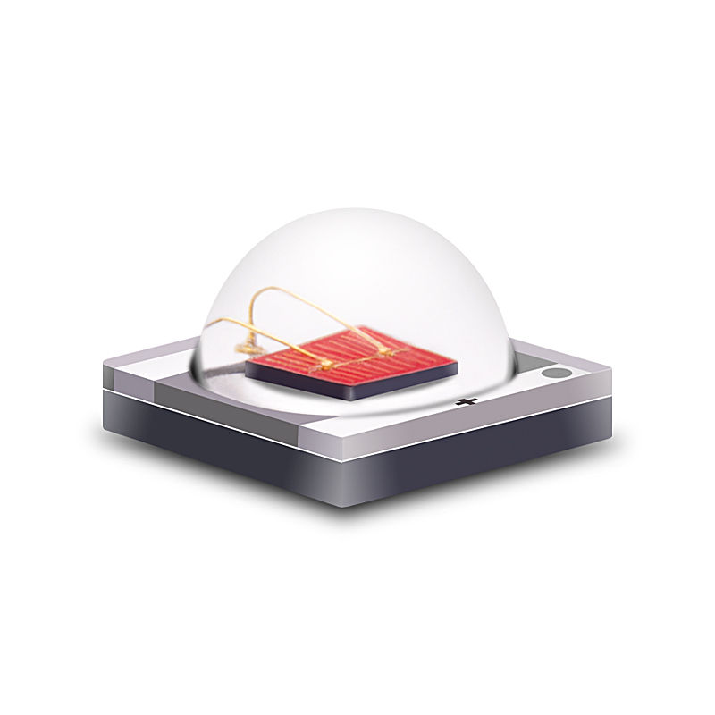 This ceramic-based, surface-mount, compact, high-brightness LED features a silicone dome lens and is designed for diverse industrial electronics applications. Its small physical dimension of 3.5 mm × 3.5 mm offers customers greater design freedom in this field, delivering up to 110 lm at 700 mA within a wavelength range of 620 nm to 625 nm.